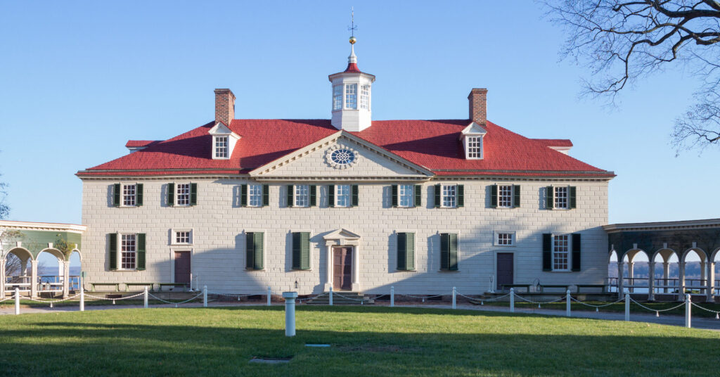 To see the faux-stone exterior of Mount Vernon – wooden siding beveled to give the appearance of stone, with sand mixed into the paint for further embellishment – is to get a sense of the lengths Washington went to fit into Virginia’s wealthy planter class. Washington was 11 when his father died, so his formal education was cut short and he actually rented his famous home from his late half-brother’s wife during his 20s.