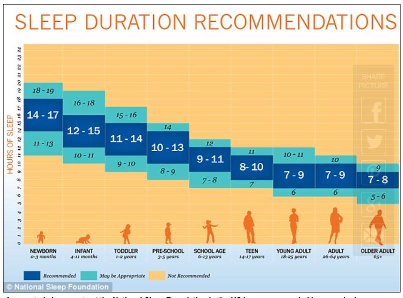 Yawning? Perhaps you’re not getting enough sleep. The National Sleep Foundation has revised its recommendations for sleep length. And your teenager will love it! The Foundation found that children from 4 months to 17 years old need more sleep than was previously thought. Further, that lack of sleep has been found to increase a person’s risk of obesity, heart disease and diabetes, shortening life expectancy. Couch potatoes: Naps in front of the television don’t count. Or they shouldn’t anyway! Source: (U.K.) Daily Mail
