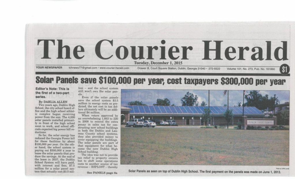 This week, the Dublin newspaper finally covered the project, with the headline, “Solar Panels save $100,000 per year, cost taxpayers $300,000 per year.”