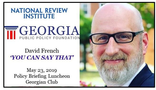 May 23: “You Can Say That: How Courage Can Defeat Political Correctness,” a noon Policy Briefing Luncheon with David French of the National Review Institute, on Thursday, May 23. Georgian Club. $35. Information and registration here.