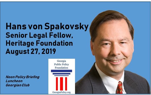 REGISTRATION DEADLINE IS TODAY! Register here for “Election Integrity: Facts, Fraud and Fiction,” the Foundation’s August 27 noon Policy Briefing Luncheon at the Georgian Club. The speaker is Hans von Spakovsky, Senior Legal Fellow at the Heritage Foundation. $35.