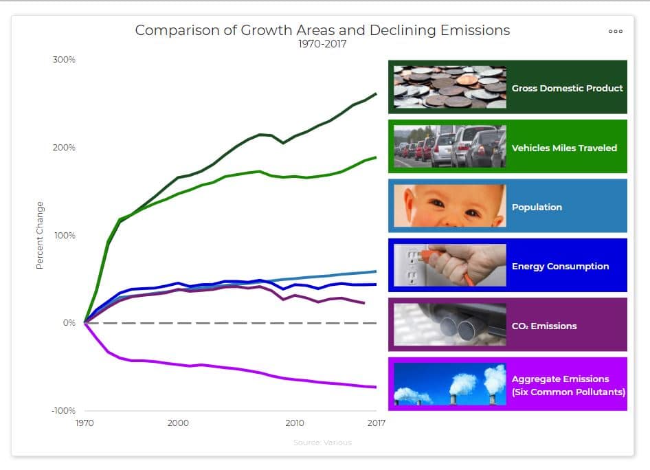 Quality air: The federal Environmental Protection Agency has released its annual air quality report. “Our Nation’s Air: Status and Trends Through 2017” documents the considerable improvements in air quality across America over more than 45 years. Between 1970 and 2017, the combined emissions of six key pollutants dropped by 73 percent, even as the U.S. economy grew more than three times.