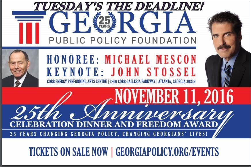 November 11: The deadline is Tuesday to register to attend the Foundation’s 25th Anniversary Celebration Dinner and Freedom Award! Have you reserved your seat yet? The Freedom Award will be presented to Dr. Michael H. Mescon, “The Pied Piper of Private Enterprise” (Wall Street Journal). Cobb Galleria Performing Arts Centre Ballroom. $150 per person; sponsorships available. Click here or call 404-256-4050 for information; reserve your seat here. (Checks accepted, too!)