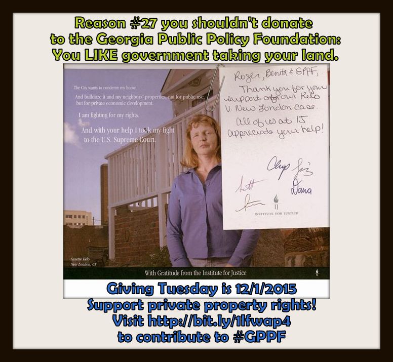 Giving Tuesday is December 1. Follow daily on our Facebook page as we count down the reasons you should not contribute to the Georgia Public Policy Foundation!