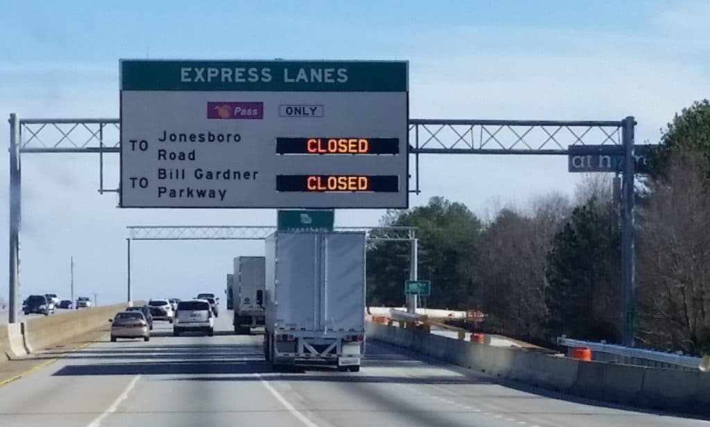 On Saturday, January 28, the reversible express toll lanes on I-75 south of Atlanta opened. The lanes’ direction was northbound, as signs on I-75 South showed.