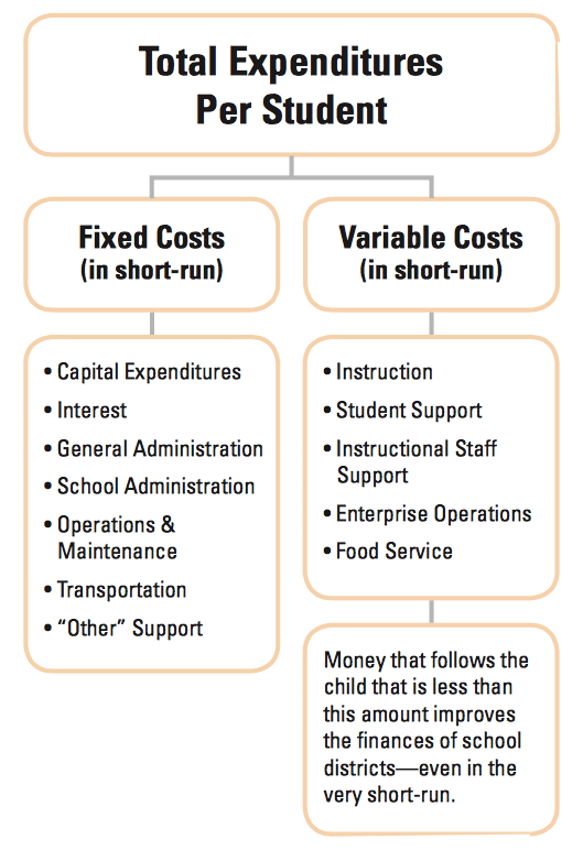 A major study by Dr. Scafidi in 2012 estimated that about one-third (34.5%) of public school costs in Georgia are short-term fixed costs.[2] Another study later found roughly the same thing.