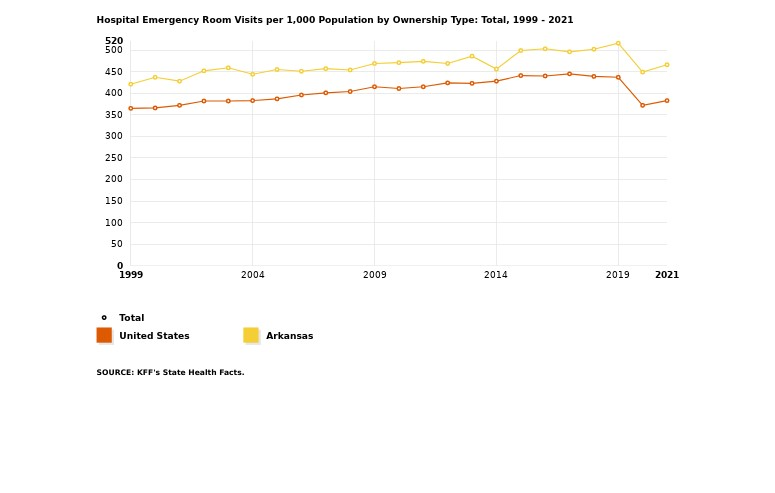 While some existing research on the Arkansas model has attempted to quantify non-emergent use by private option beneficiaries using hospital survey data, there is a lack of consensus on what often constitutes emergency care.7 Furthermore, a program that now covers roughly 10 percent of Arkansans should be adequately reflected in overall emergency room utilization.
